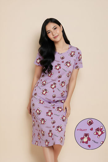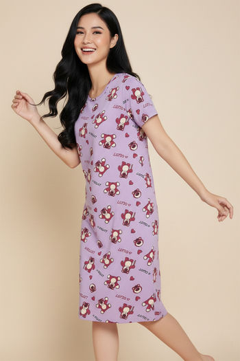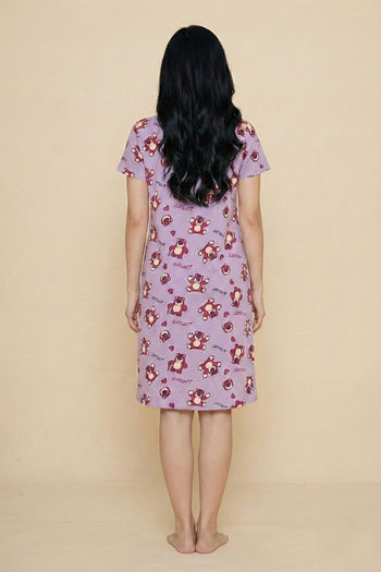 Zivame Toy Story Knit Cotton Knee Length Sleep Dress - Orchid Bloom