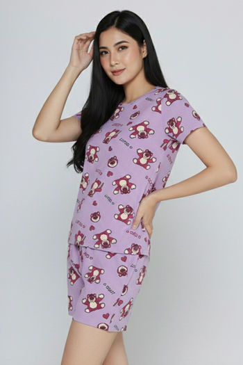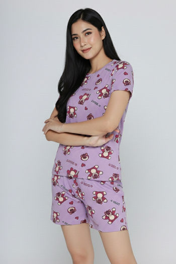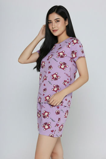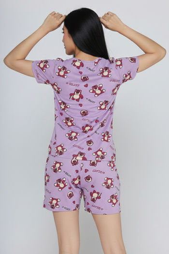 Zivame Toy Story Knit Cotton Sleep Short Set - Orchid Bloom