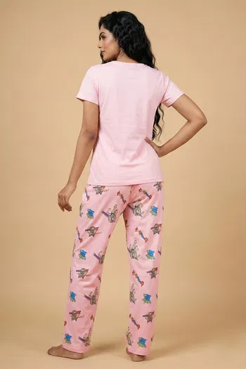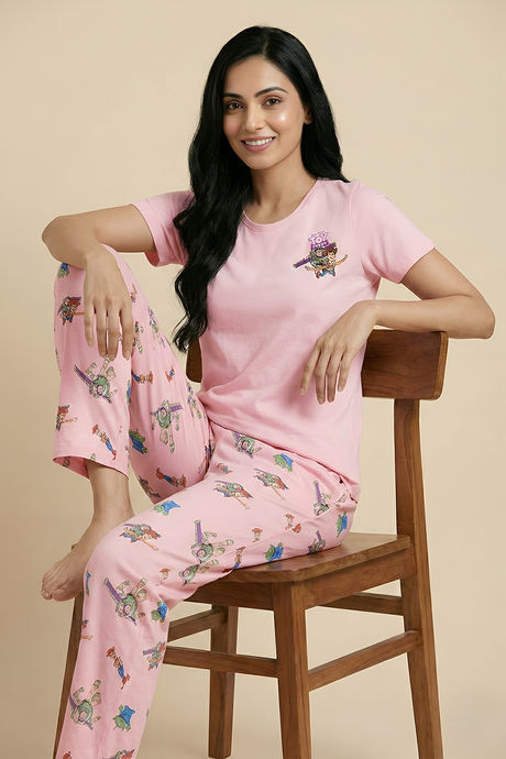 Zivame Toy Story Knit Poly Pyjama Set - Crystal Rose