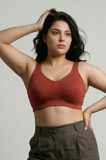 Zivame True Curv Double Layered Non Wired Full Coverage Super Support Bra - Burnt Brick