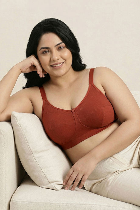 Zivame True Curv Double Layered Non Wired Full Coverage Super Support Bra - Burnt Brick