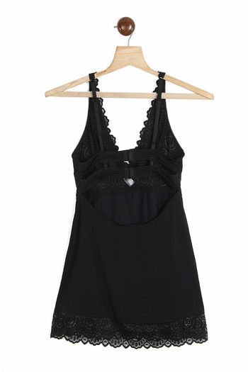 Zivame Very Sexy Floral Scallop Lace Babydoll with Thong Panty- Black