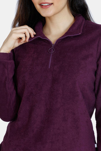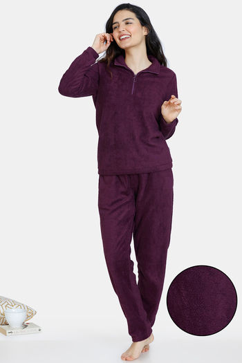 Zivame Warm Polar Fleece Knit Pyjama Set - Potent Purple