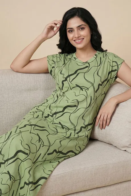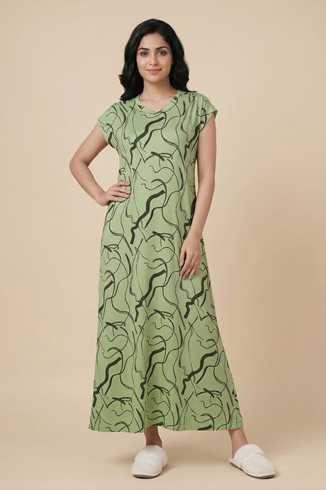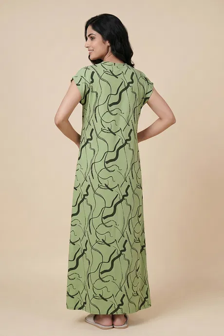 Zivame Woven Ankle Length Nightdress - Foam Green