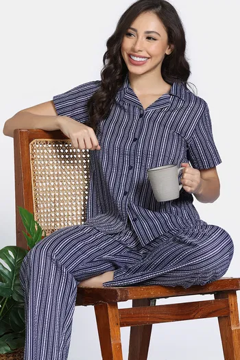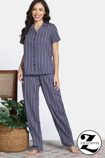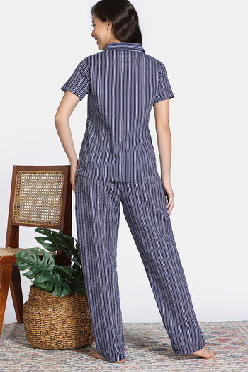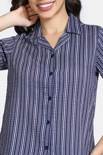 Zivame Woven Seersucker Sleep Pyjama Set - Parisian Night