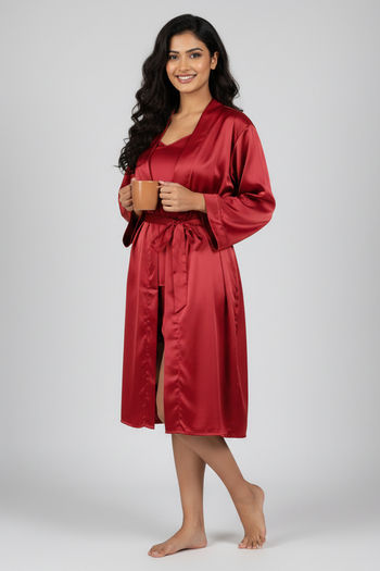 Zivame Satin Sleep Robe - Scarlet